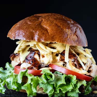 Jugoso pollo a la brasa deshilachado, acompañado de papas crocantes, cremas y un toque de ensalada fresca, todo servido en pan artesanal. Sabor peruano en cada bocado.